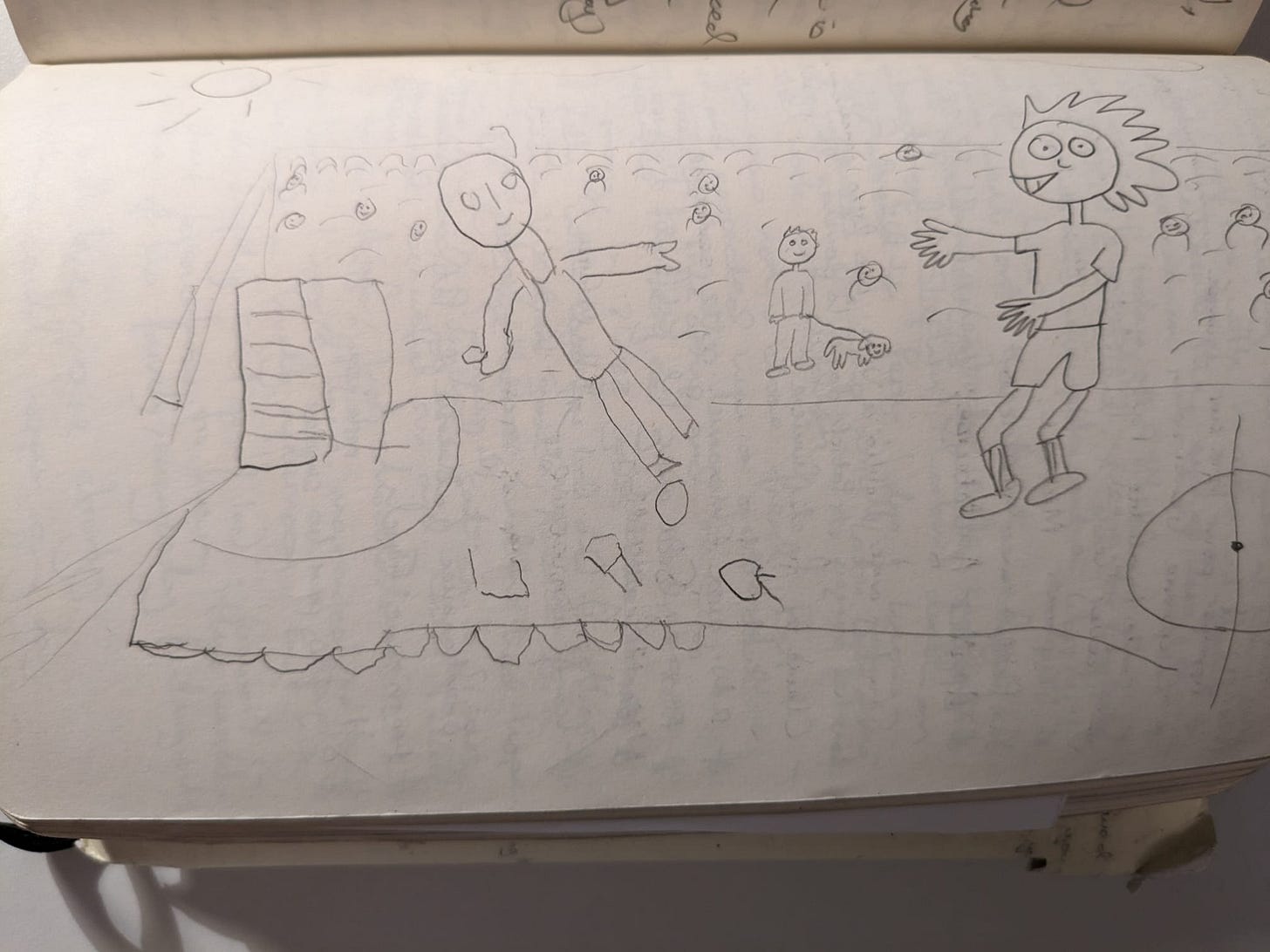 It took Patrick time to trust people – which was fine, because at L’Arche time was the main thing we had. Every morning we all had breakfast at our long kitchen table, every evening we had dinner together. Every Tuesday night we had a special meal where everyone would share how they were and how their week had been over an aperitif in the lounge, holding a candle when it was their turn to talk. Of an afternoon, Patrick and I would often pop to a café, order espressos and draw pictures together, taking turns to add elements to the scene. We would spend time with Francois too, the smiling man from the party. He worked with Patrick in the workshop and had even less language. Francois had never learned to talk and communicated mainly through eye contact, gestures and the beaming smile that he rarely turned off. We would walk to and from the workshop together and sometimes pop over for dinner at Francois’s house.